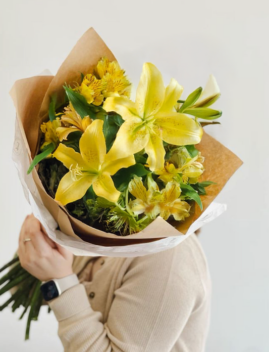 Ramo Olivia : extra grande lirios, rosas y tulipanes