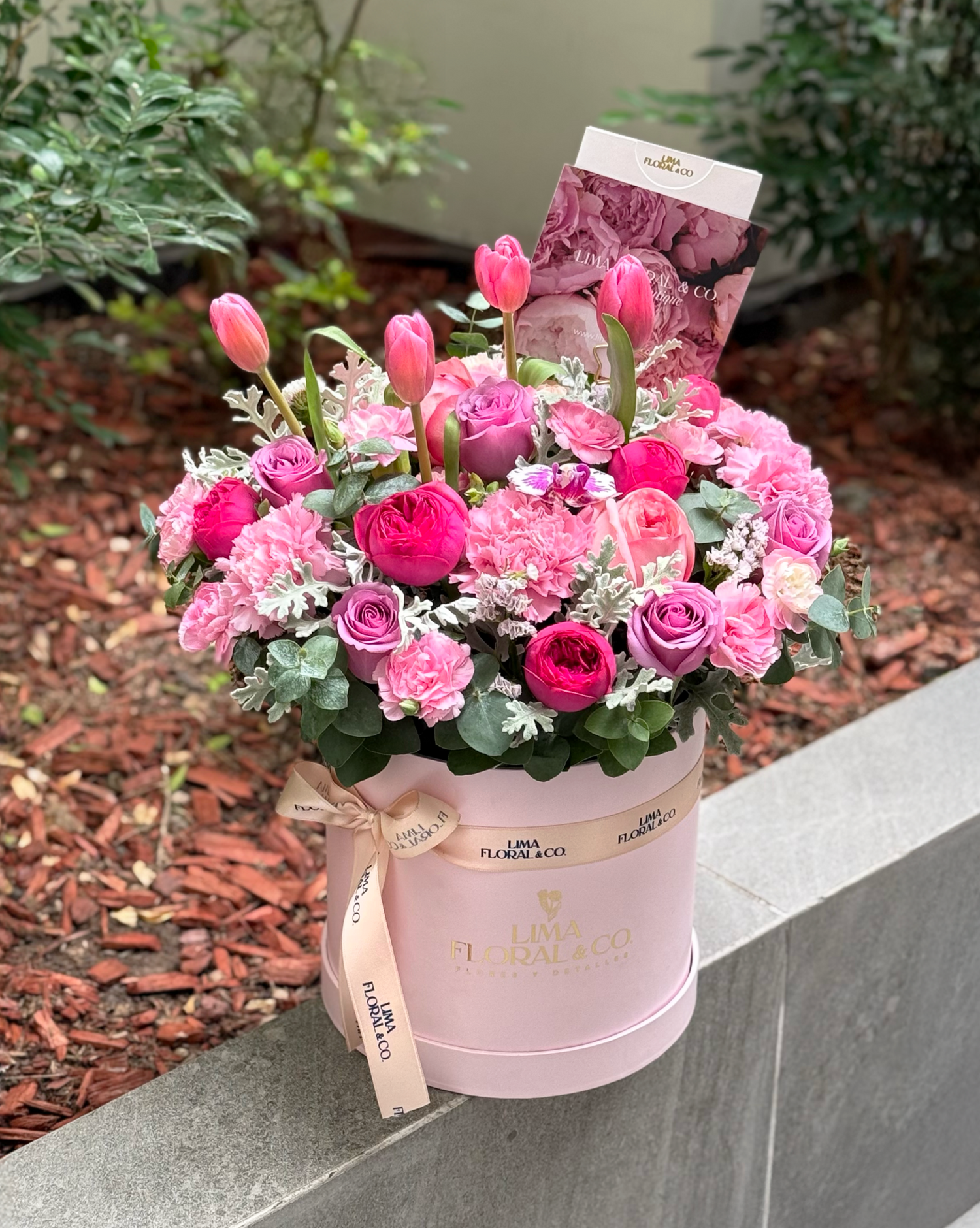 Recuerda que el box ya viene con un oasis floral húmedo por dentro. Puedes ir retocando el agua con cuidado, pero evita mojar las flores para que sigan luciendo perfectas.