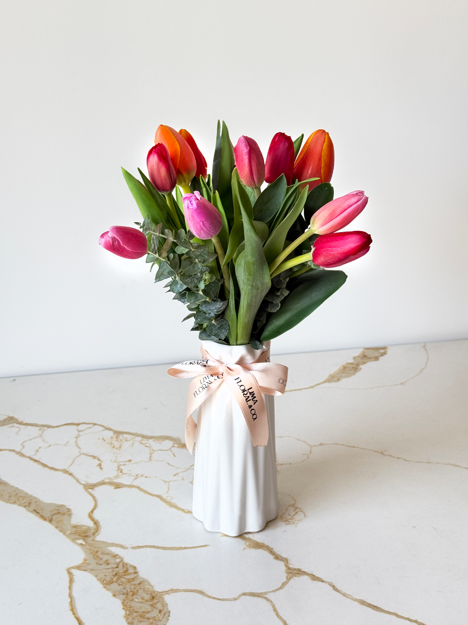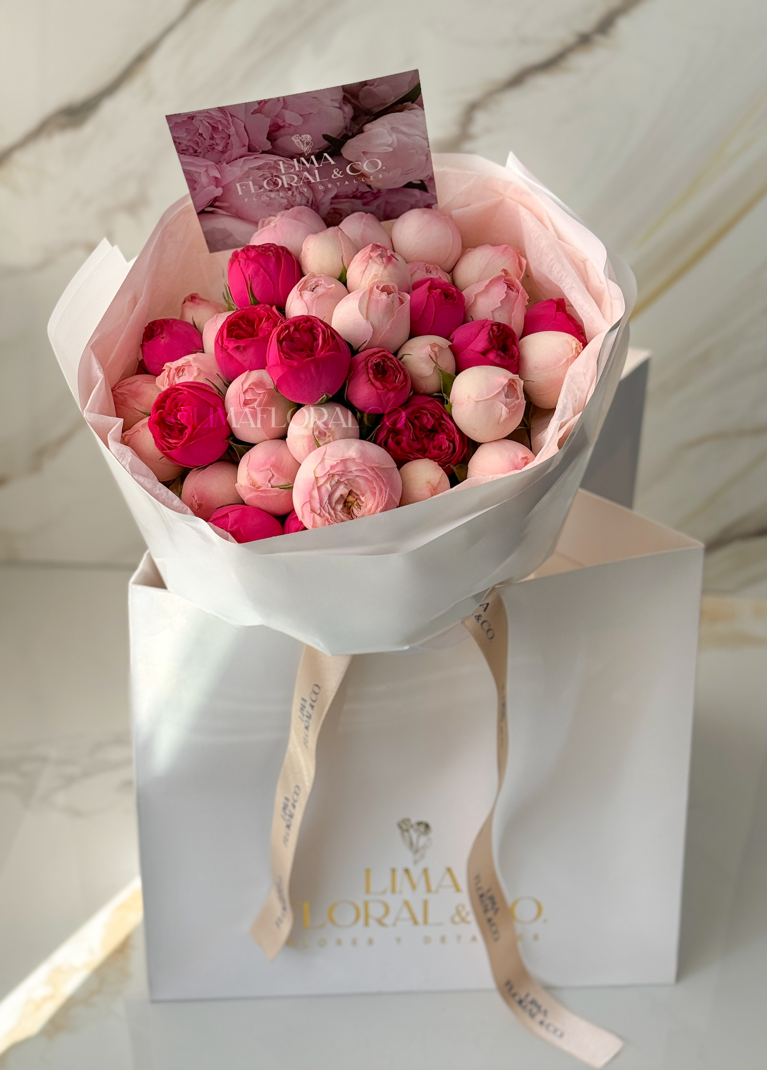 Tu ramo está diseñado para lucir perfecto. Las flores ya están cortadas a la misma altura y listas para colocarlas directamente en un jarrón.