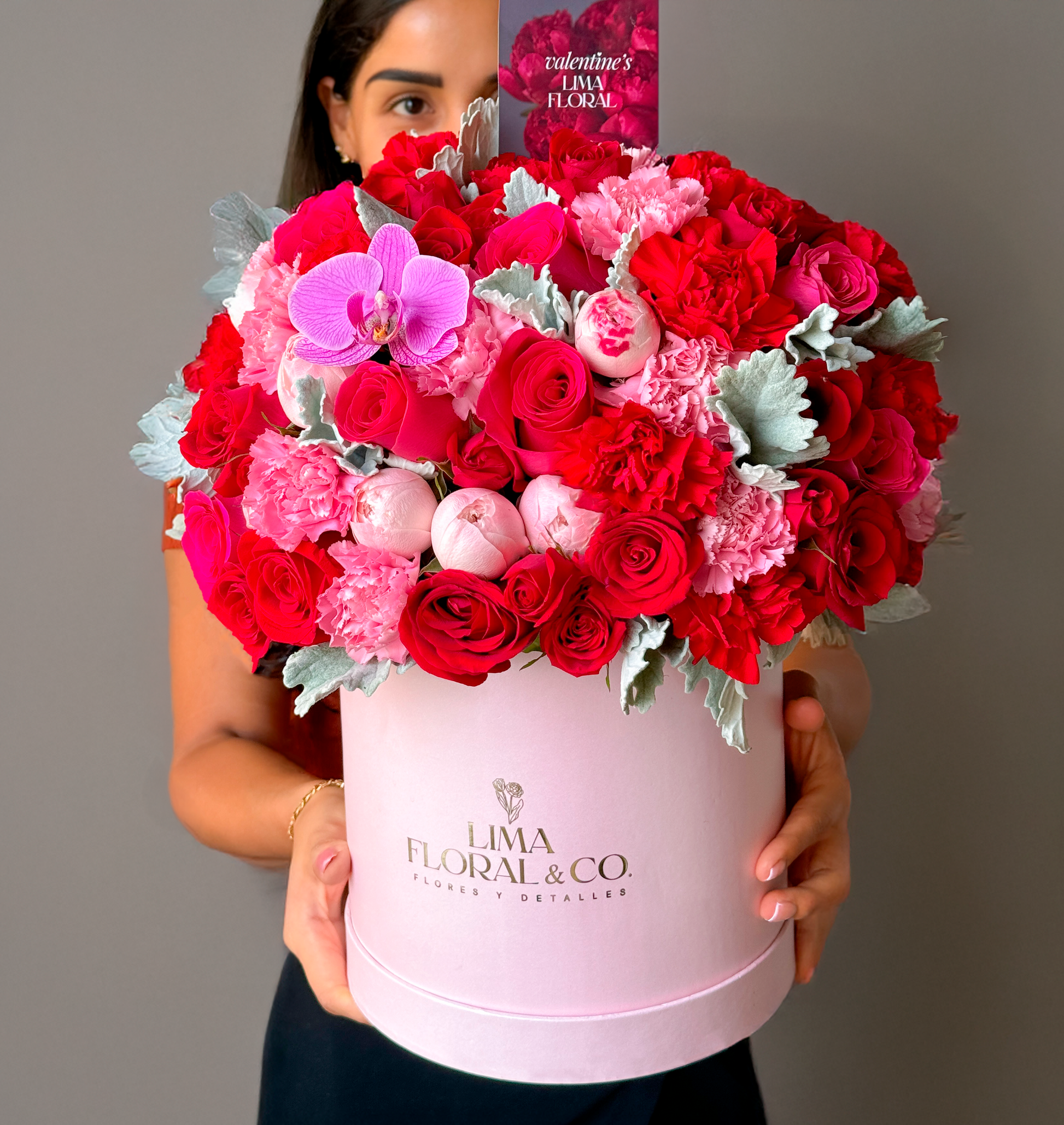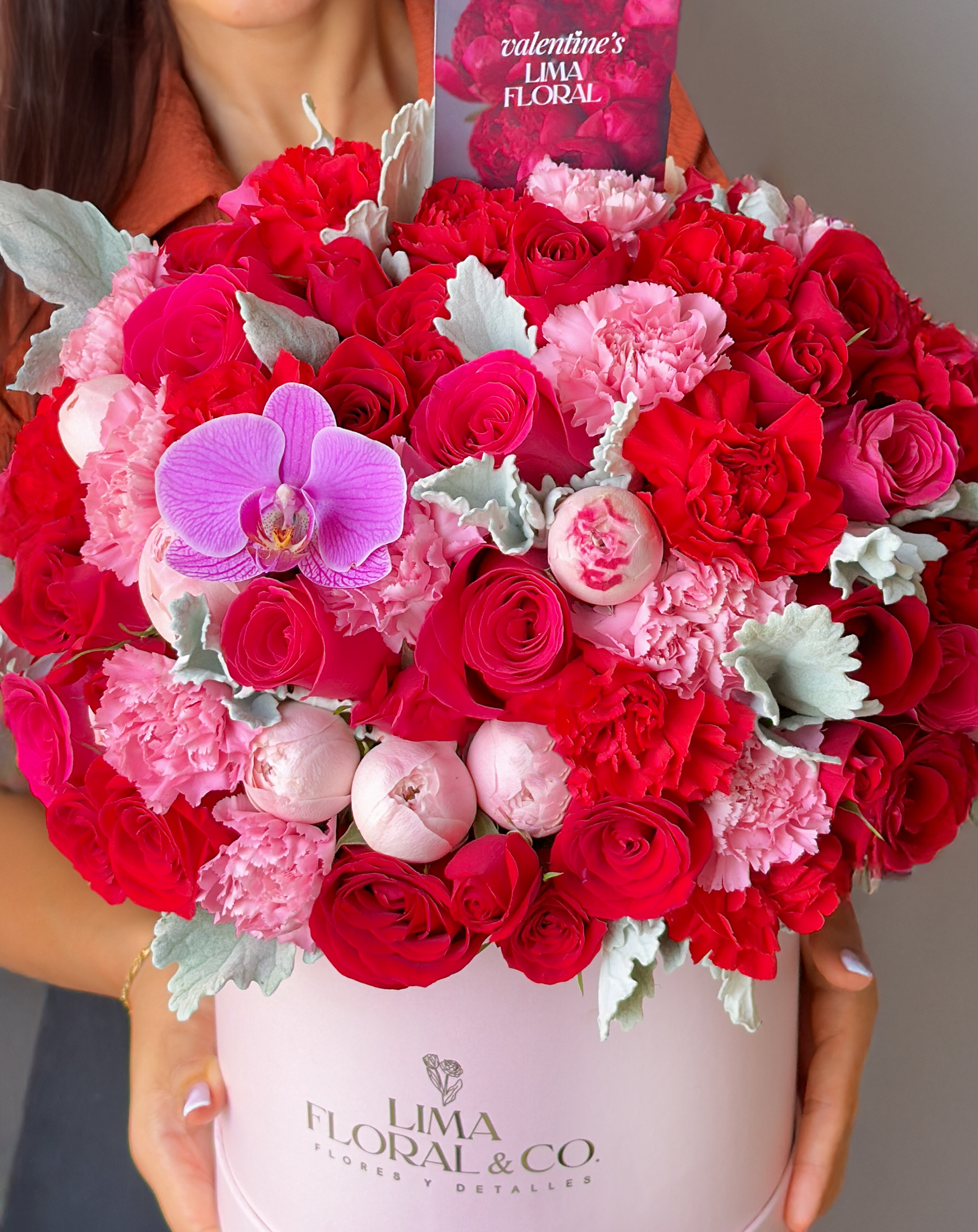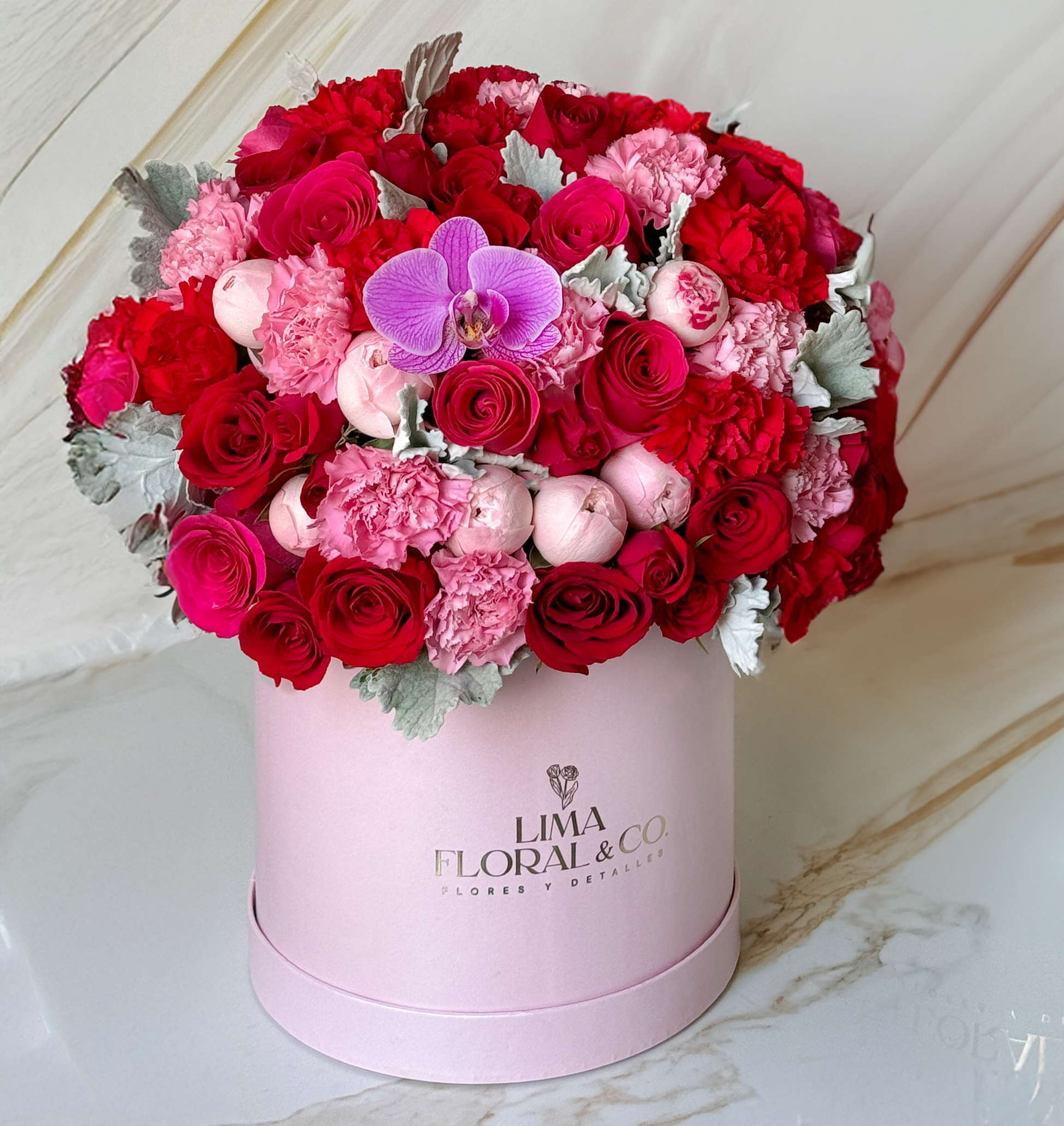 Nuestro favorito! un box gigante lleno de rosas inglesas, mini rosas, claveles y más. Hermoso, diferente e impactante.