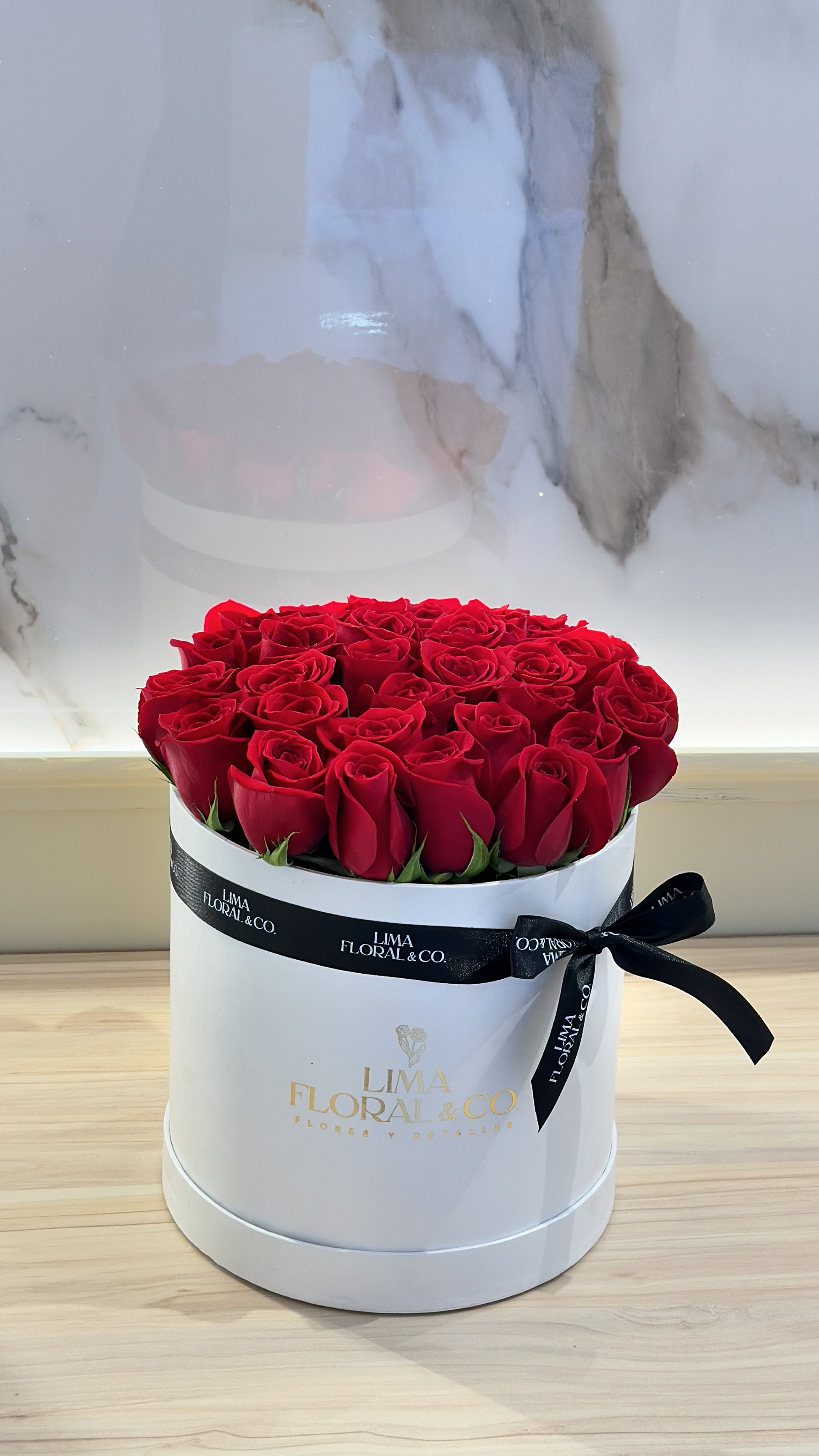 25 a 30 rosas rojas para expresar todo tu amor. Incluye globo metálico, tarjeta de dedicatoria y papelería de la marca. Un regalo romántico y atemporal.