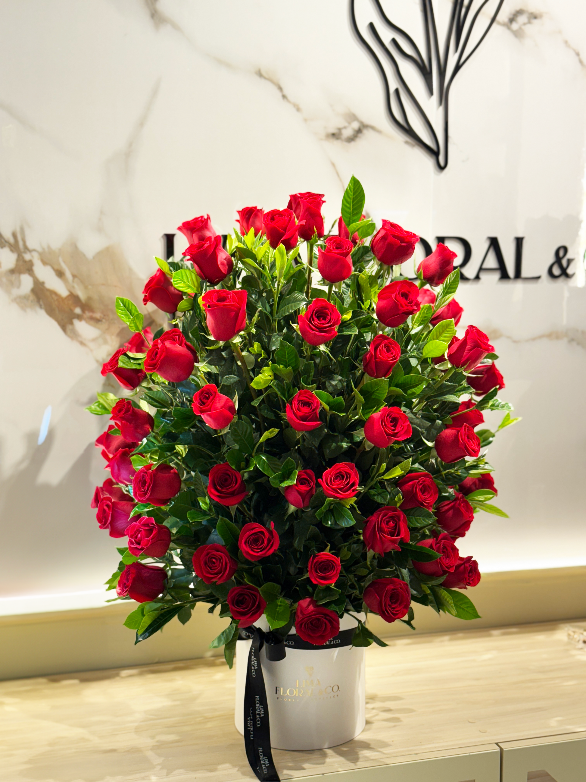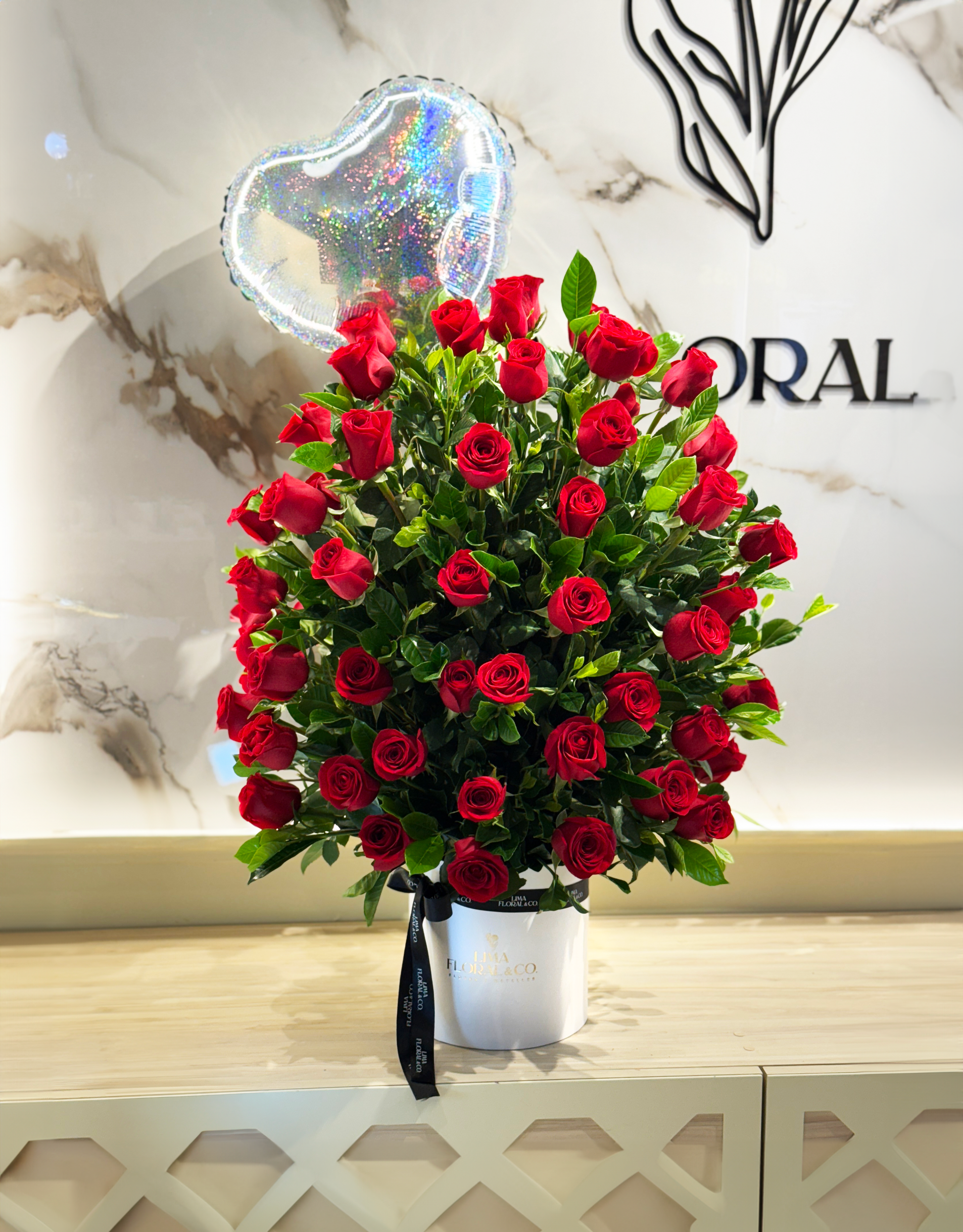 Con 85 cm de altura, este box está diseñado para celebrar los momentos más importantes de la vida: aniversarios, cumpleaños, agradecimientos o simplemente para decir “te amo” a lo grande.