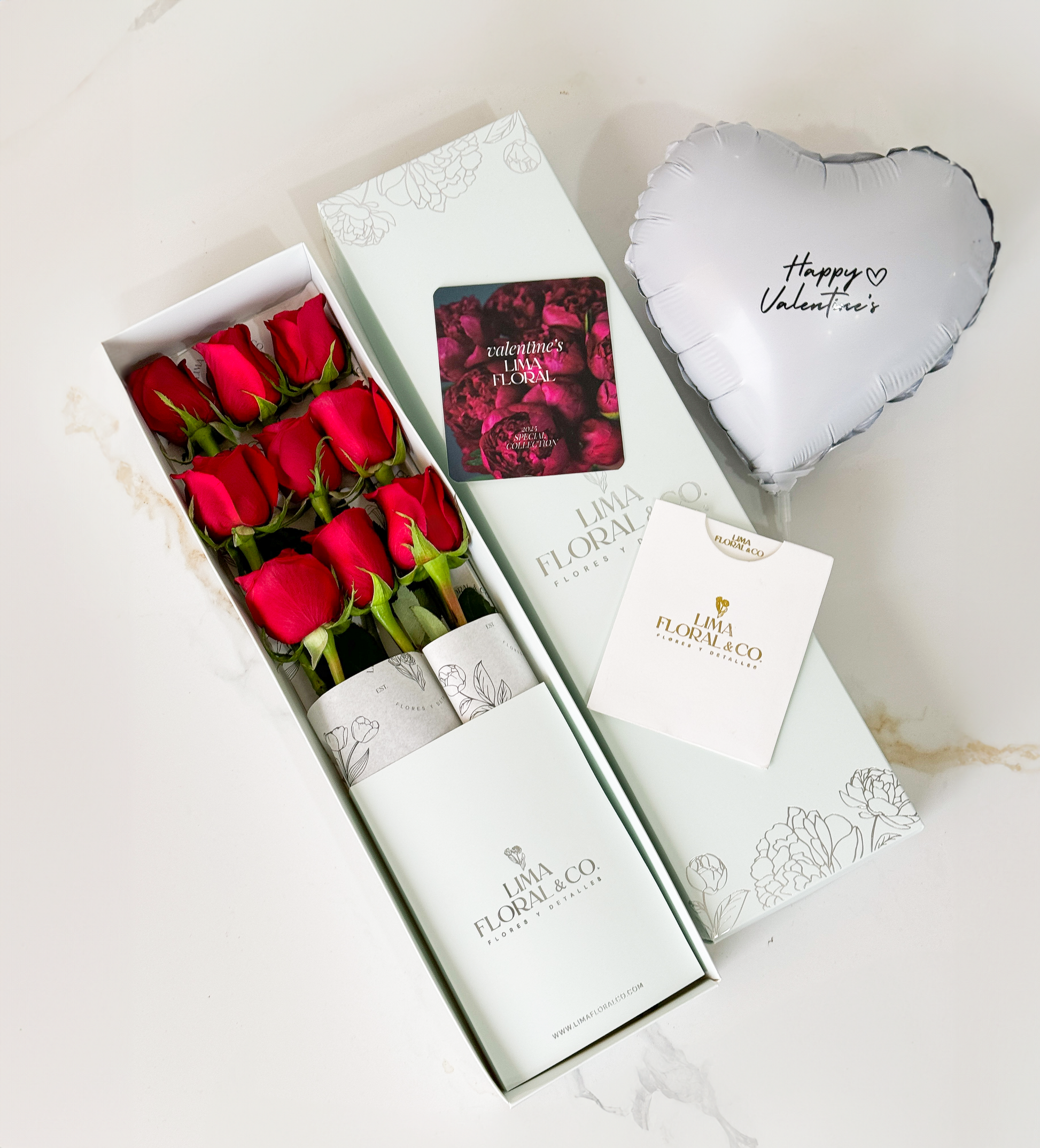 Cada caja viene con un globo de corazón grande de cortesía, una tarjeta para tu mensaje especial y papelería exclusiva de nuestra marca. ¡Sorpréndela con este gesto lleno de amor!