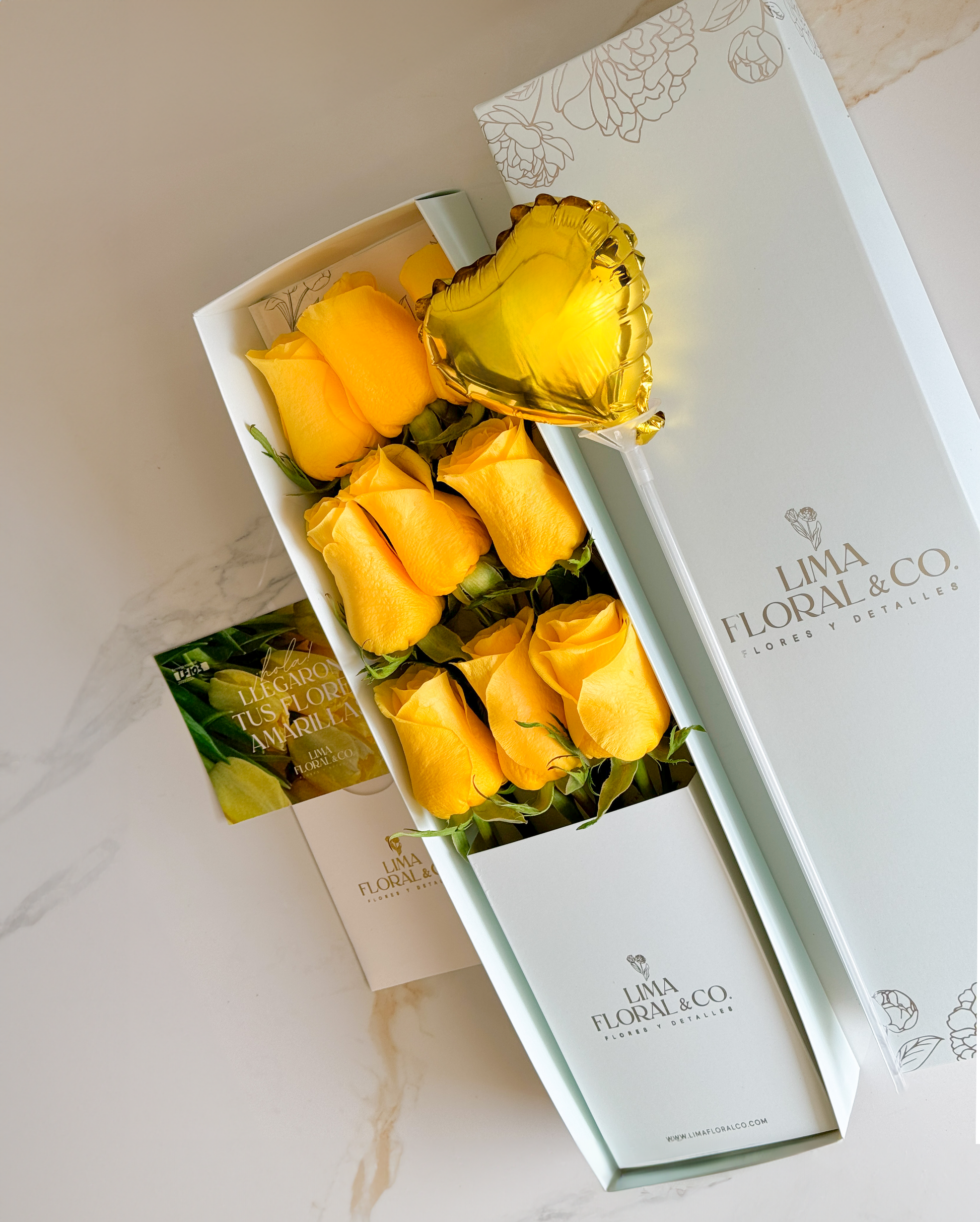 Caja 9 Rosas Amarillas - Flores Amarillas