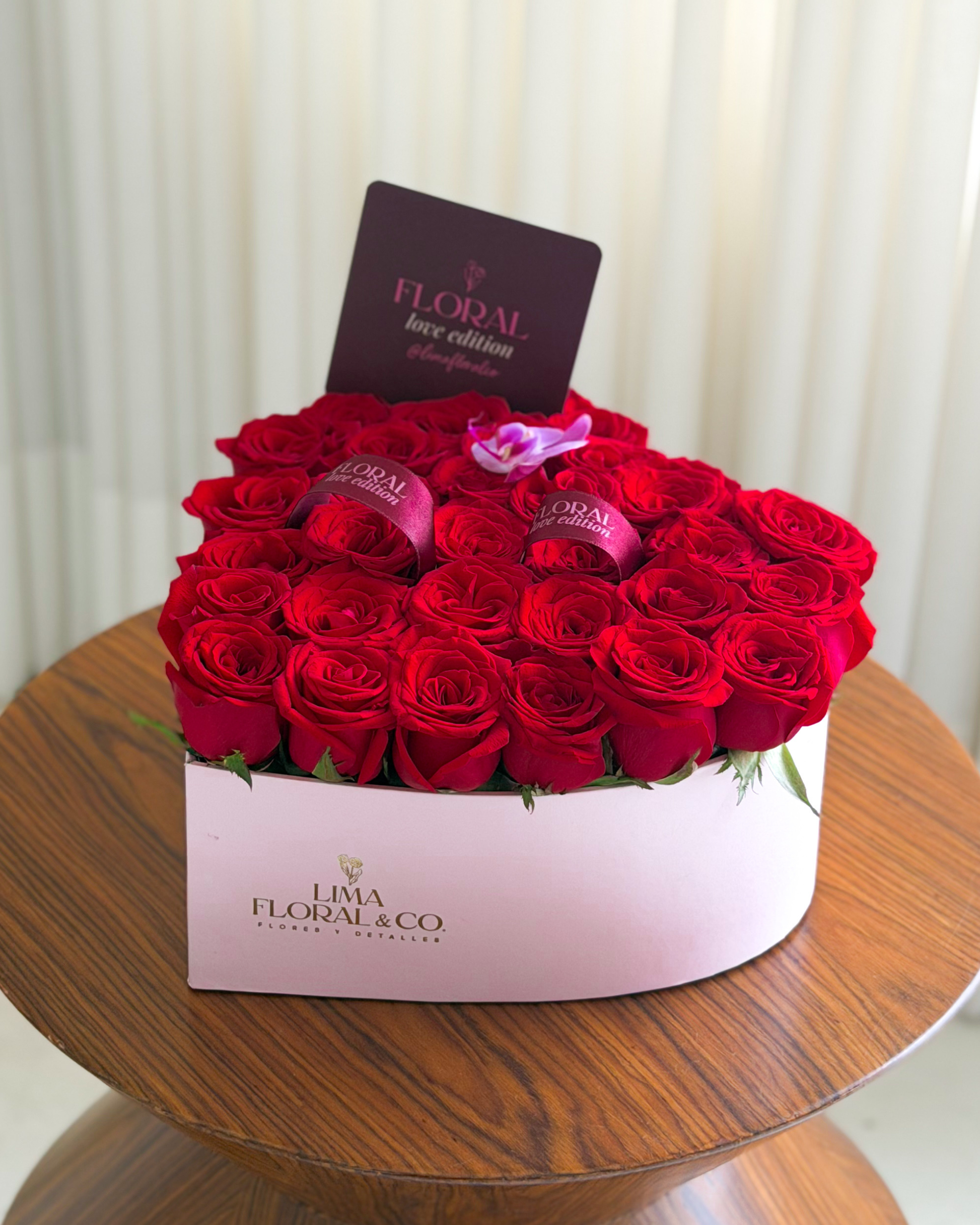 Un corazón mediano de rosas rojas seleccionadas, perfecto para un detalle elegante. Ideal para sorprender con algo clásico, delicado y demasiado especial.