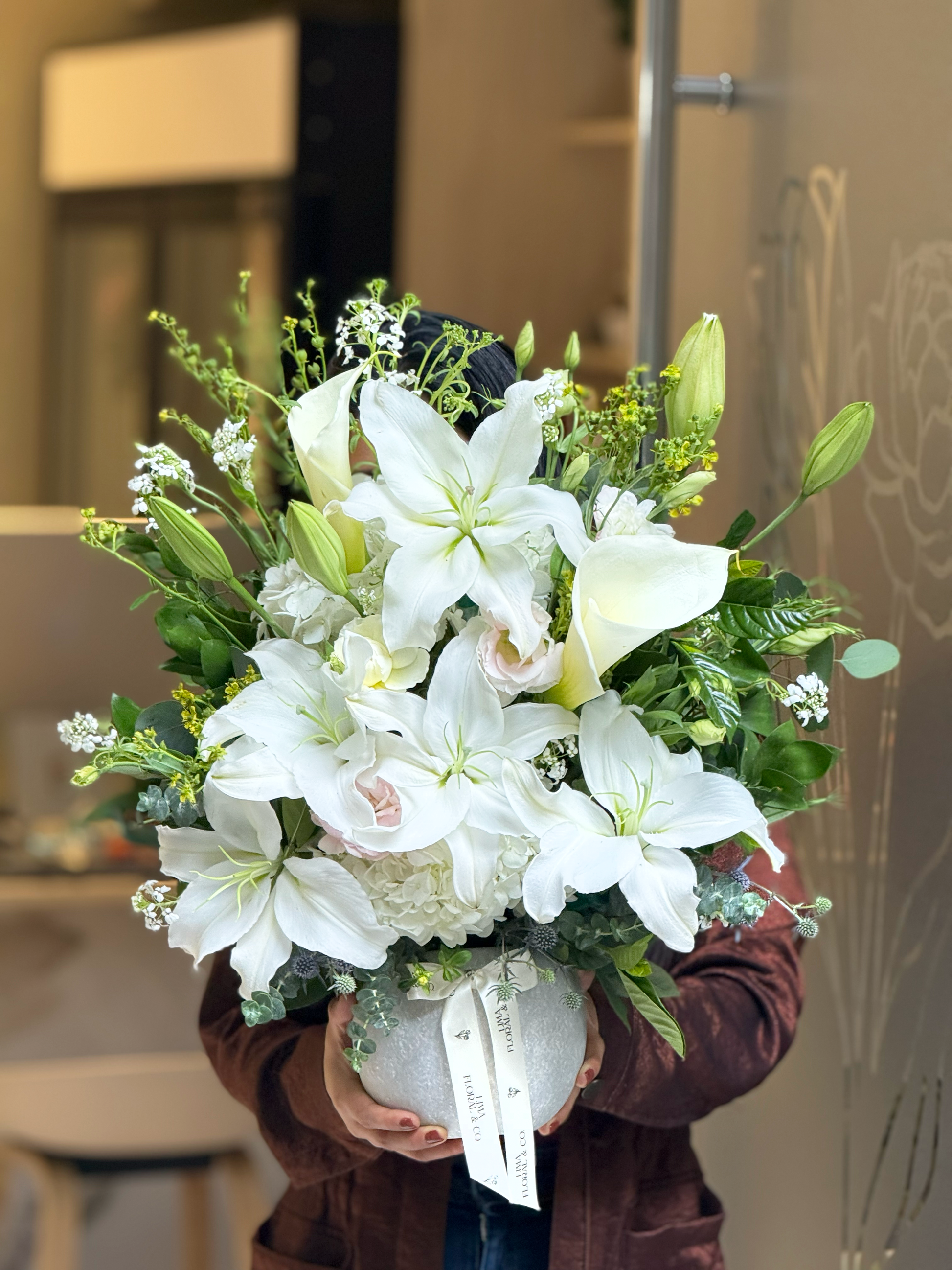 Perfecta como centro de mesa sofisticado o como un detalle que transmite calma, pureza y estilo.