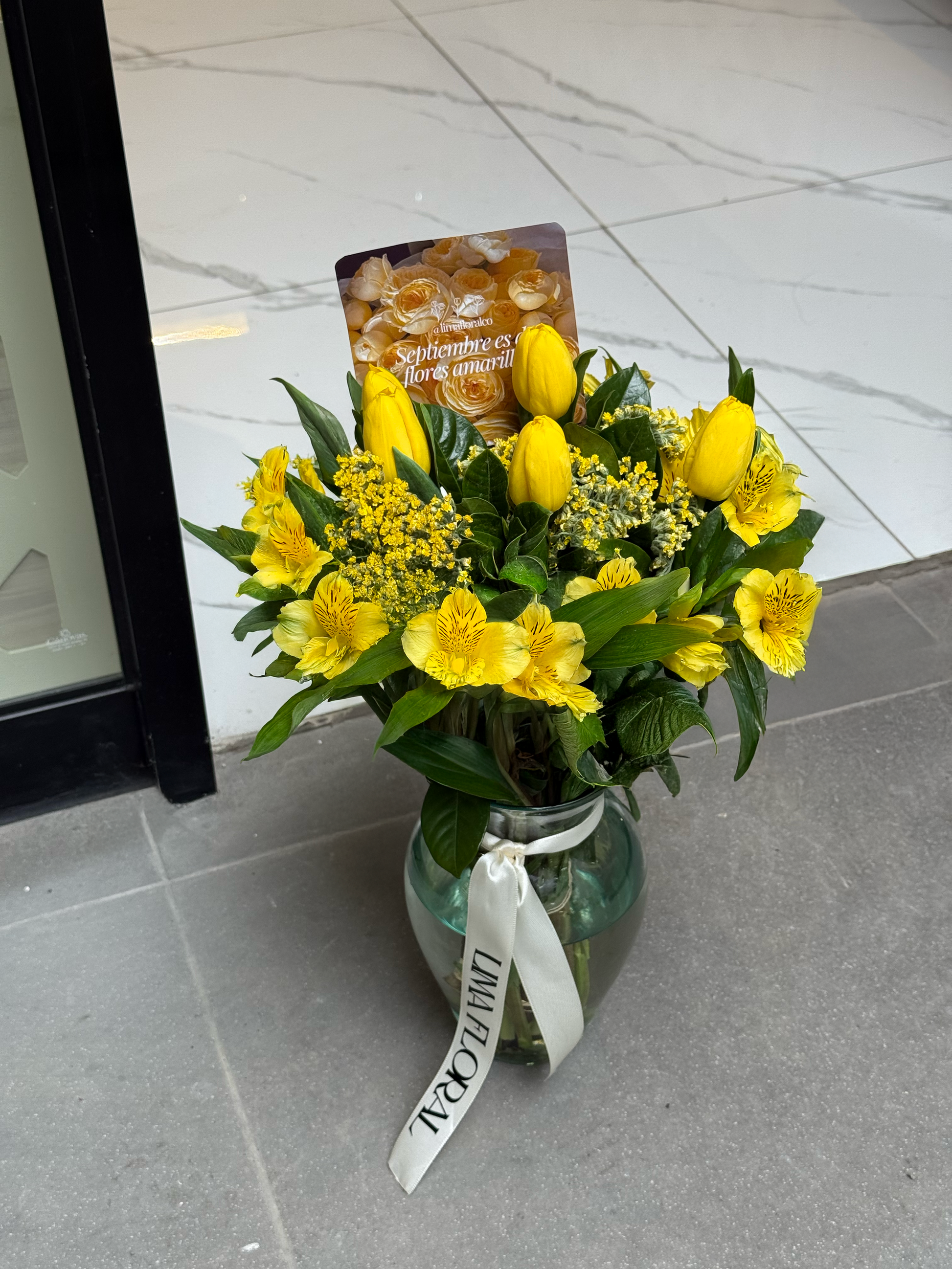 Jarrón Amelia Tulipanes y Astromelias - Flores Amarillas