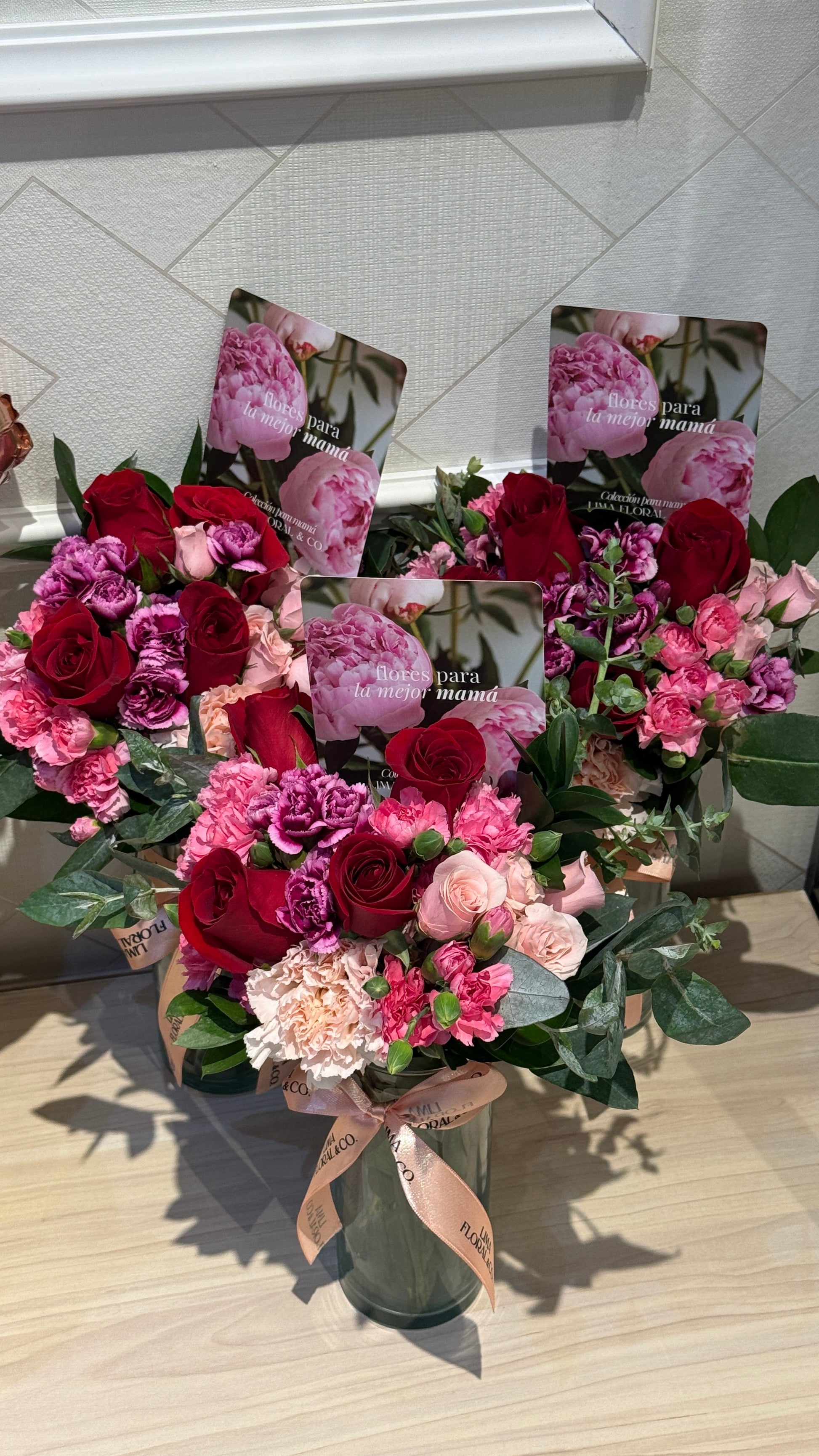 Un detalle con significado. 4 rosas y claveles en jarrón mediano, también disponible en ramo.