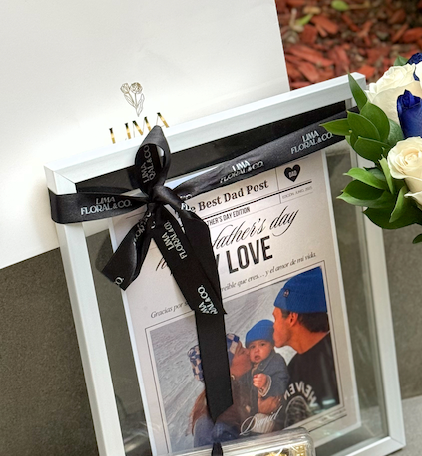 • Cuadro grande estilo periódico con foto personalizada (Mensajes a elegir: Happy Father’s Day, Primer Día del Padre, Feliz día, esposo y padre, Para el mejor abuelo, De parte de tus hijos)
