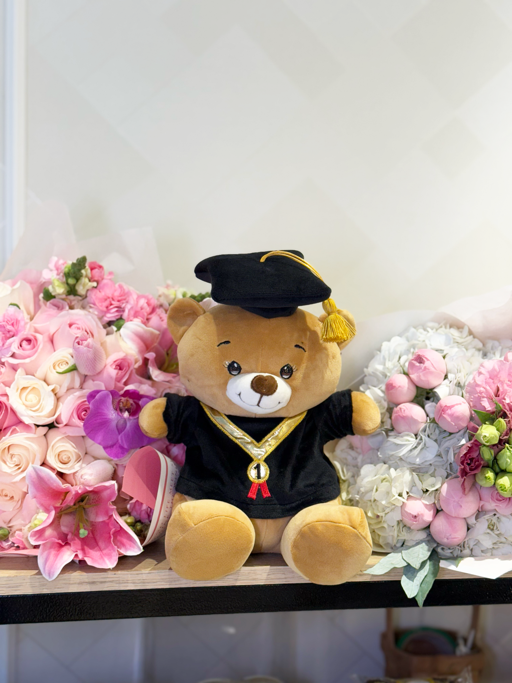 ¡Celebra el logro de esa persona especial con nuestro adorable Osita Graduada! Este tierno peluche lleva puesto su birrete de graduación, siendo el regalo perfecto para conmemorar este importante hito en la vida de tus seres queridos. Acompaña tus felicitaciones con este entrañable detalle que seguramente arrancará sonrisas y abrazos de emoción. ¡Haz de su día de graduación un momento inolvidable con nuestro Osito Graduado!