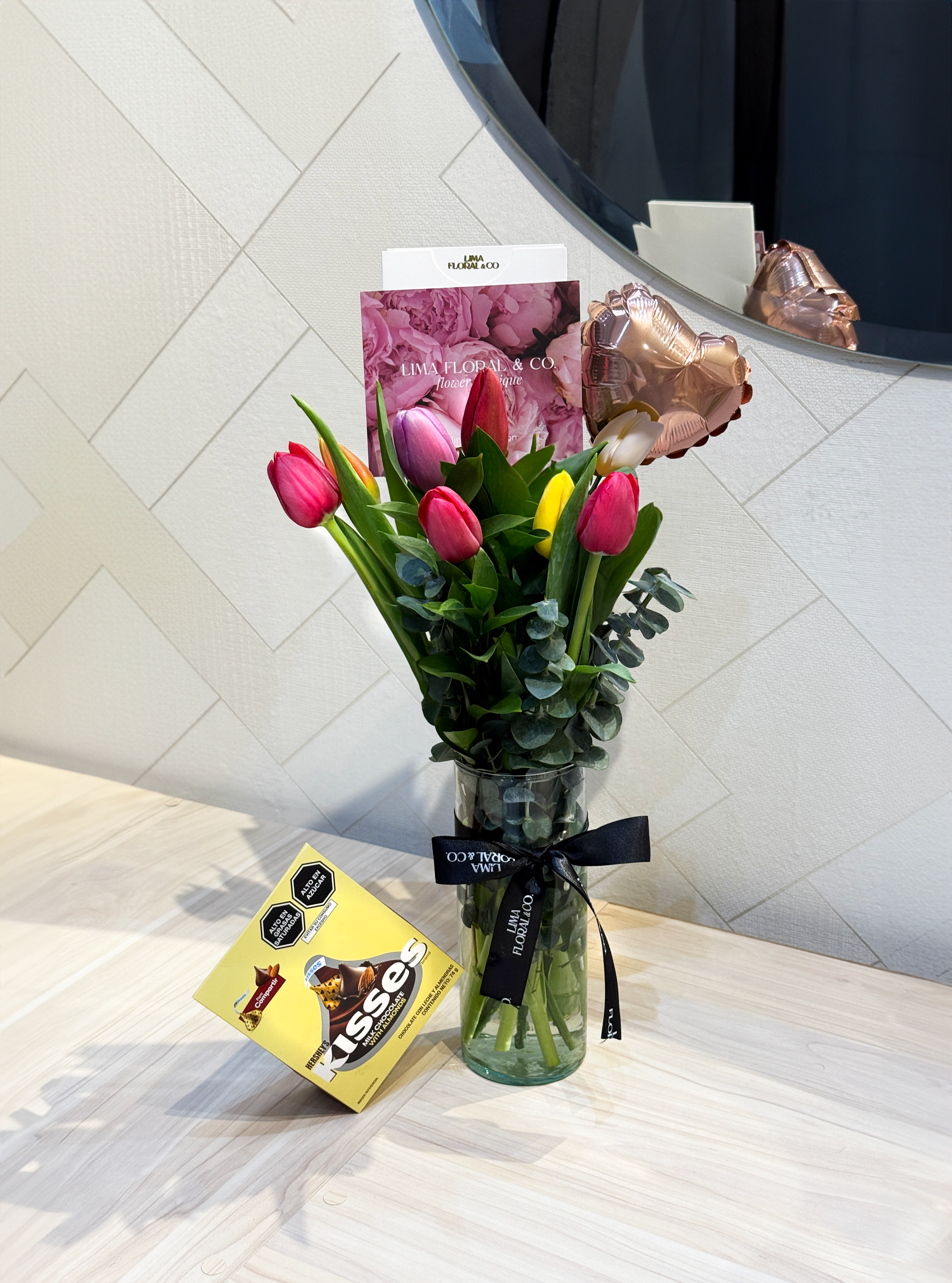 Pack Jarrón 8 Tulipanes + Chocolates Kisses