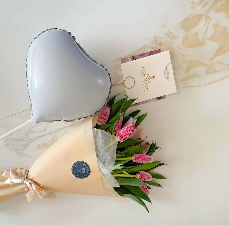 Un toque de color y frescura con nuestro ramo de 10 tulipanes. Perfecto para iluminar cualquier espacio y alegrar el día de esa persona especial. Presentado con cariño, con un globo y una tarjeta de dedicatoria para completar el regalo.