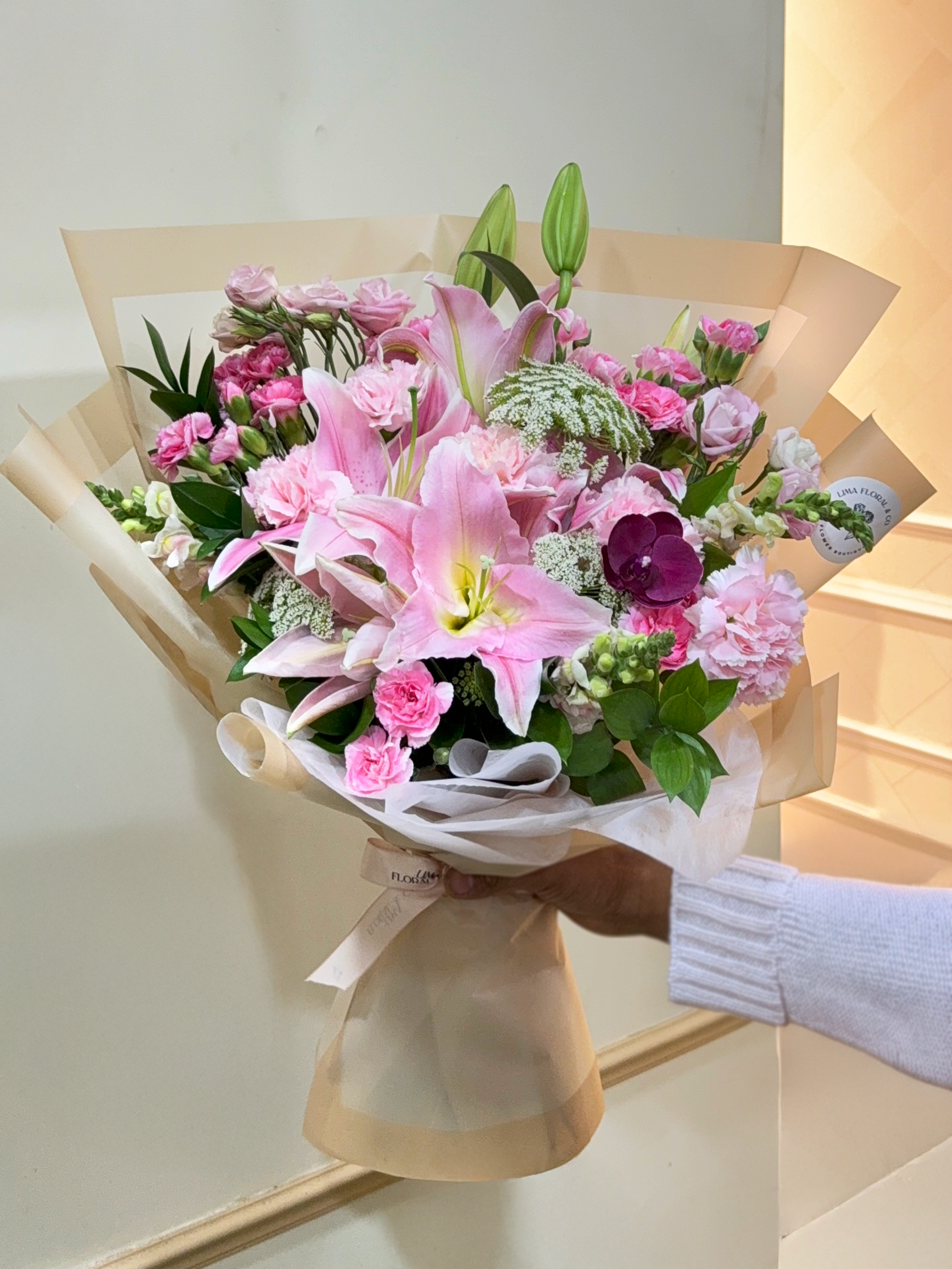 Un mix floral con textura y movimiento natural. Combinando distintas flores para un resultado fresco y con volumen.