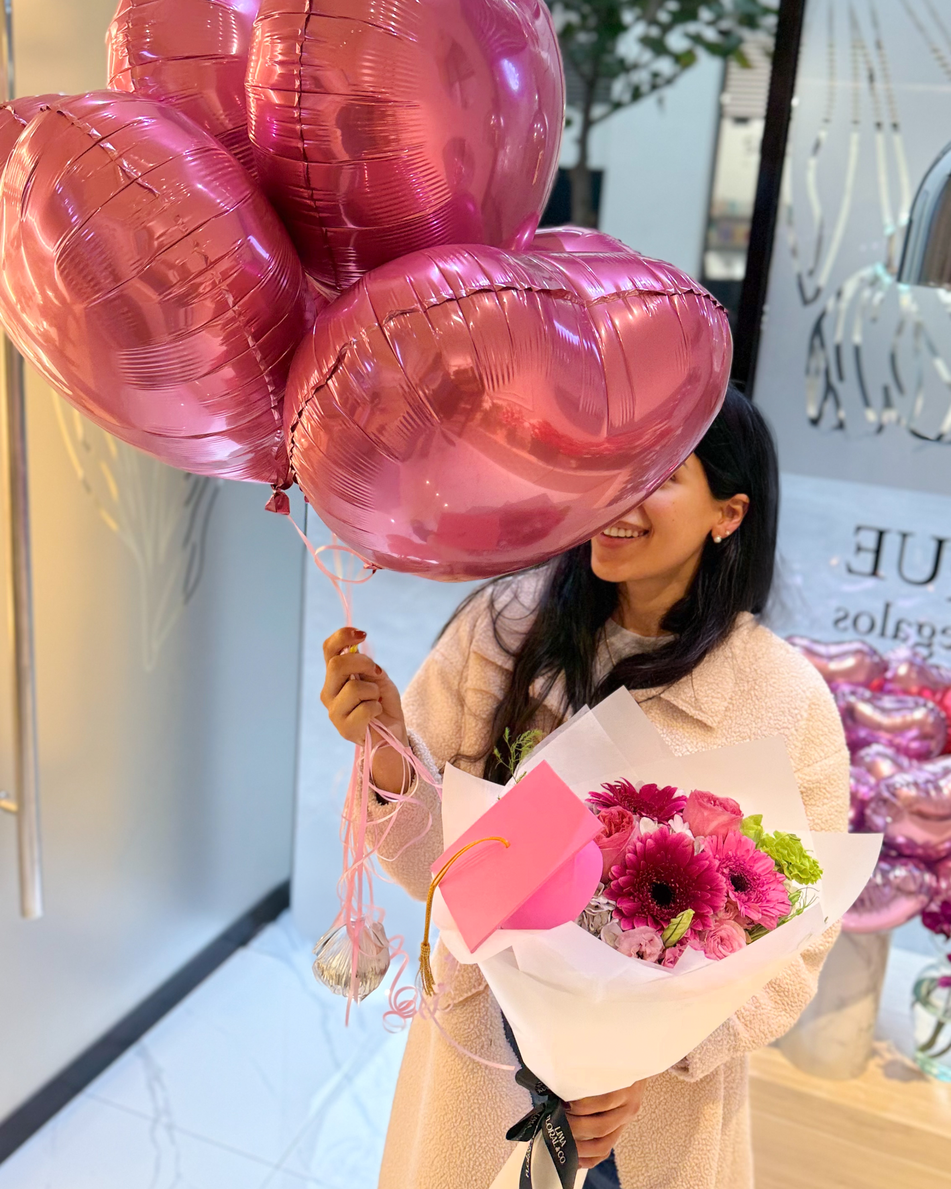 Ramo Gerbera Grad + Bouquet 5 globos - Flores para graduación