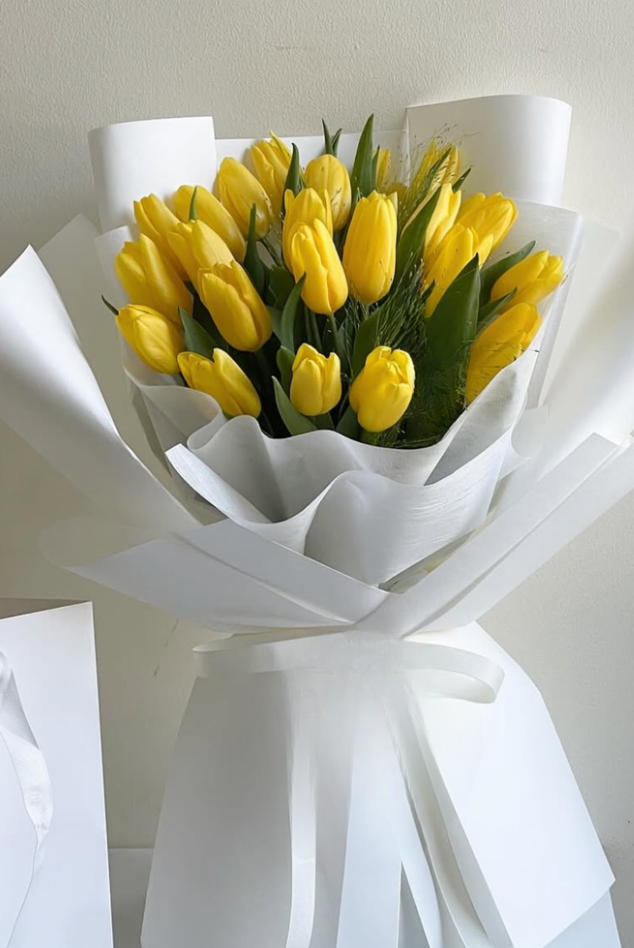Tulipanes amarillos, vibrantes y elegantes, listos para llenar de luz cualquier espacio.