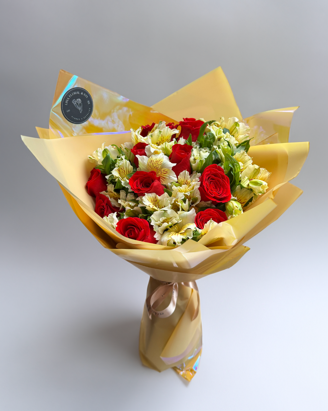 Haz que cada momento sea especial con nuestro Ramo de Rosas y Astromelias. Una combinación única de elegancia y exotismo que nunca pasa desapercibida. ¡Haz tu pedido y deja una impresión duradera con este hermoso arreglo floral!